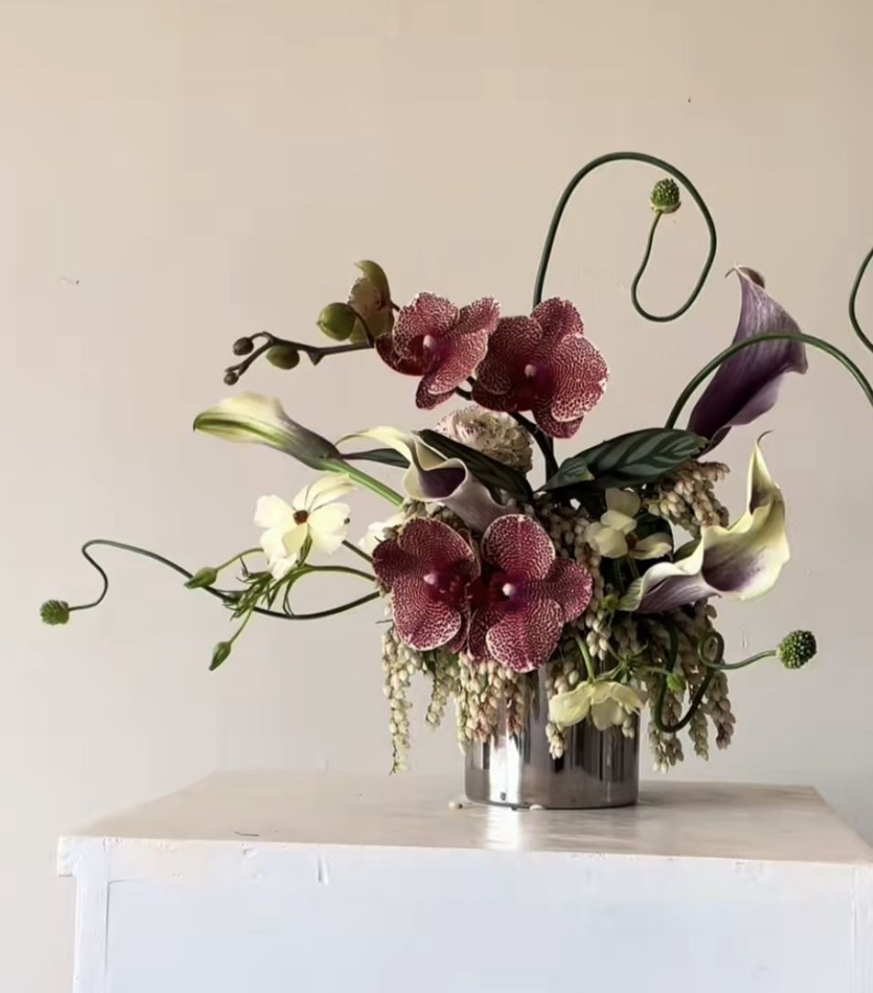 Artisan sculptural arrangements curated with seasonal blooms. No two bouquets are alike.